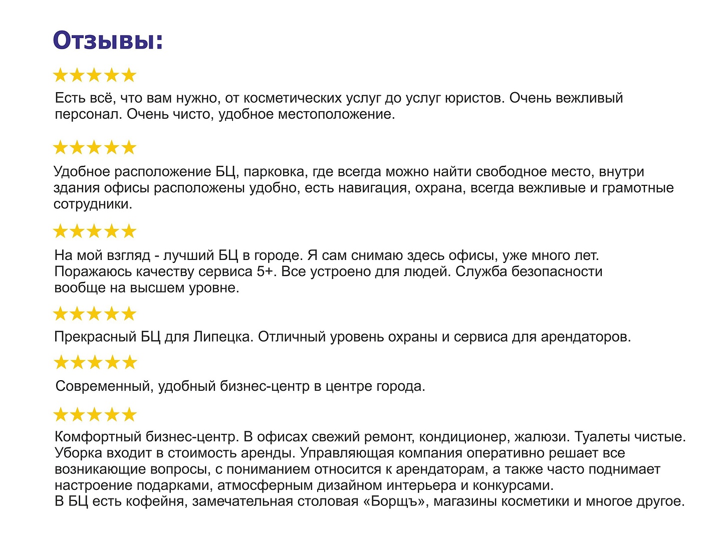 - Прекрасная атмосфера и инфраструктура для работы и развития Вашего бизнеса!
